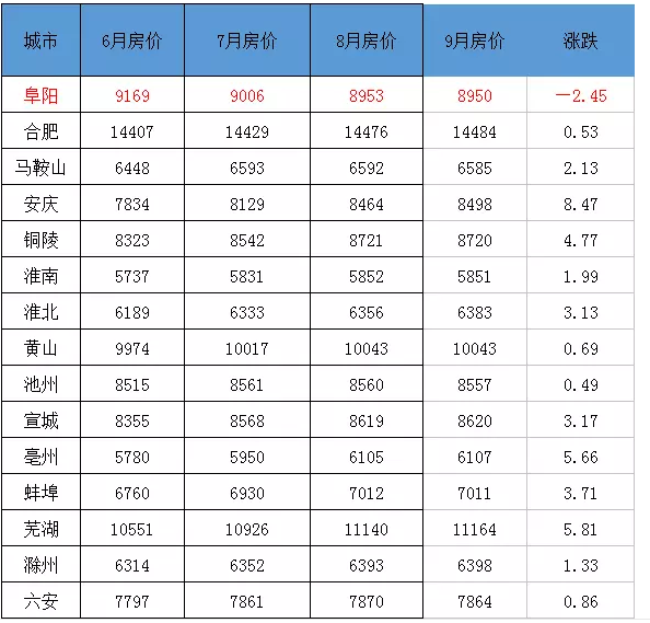 阜阳是下半年安徽唯一下跌城市