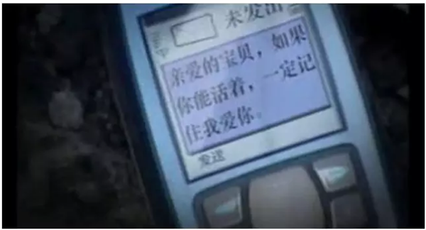 在孩子的小被子里,放着一部手机。上面赫然写着一条未发出的短信:亲爱的宝贝,如果你能活着,一定记着我爱你。