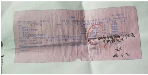 在汪女士提供的收款单中,记者看到,顾客签名日期是2018年6月2日,单据标明麻醉费800元、化验费(体检费)100元、输液费100元、假体隆胸费用4.2万元。单据还手写注明“特价申请项目、不予退费,可转换项目”字样。